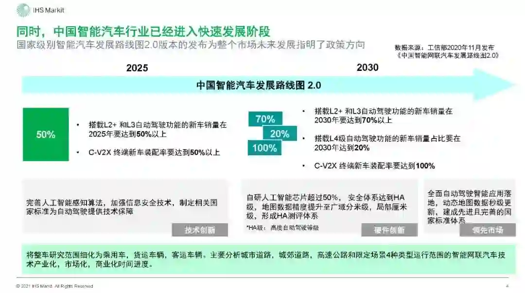 同时,中国智能汽车行业已经进入快速发展阶段。国家级别智能汽车发展路线图2.0版本的发布为整个市场未来发展指明了政策方向。