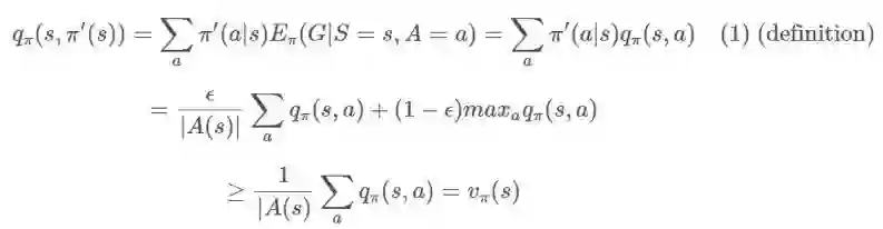 假设不再让我们的策略具有以概率 ϵ 均匀选择动作的随机性,而是让我们的策略具有能随机选取动作而不管策略如何规定的环境。那么,我们就可以保证有最优解。其证明的大致过程是,在 (1) 中,如果等式成立,那么我们有 π=π′,因此,则由于该环境的设置,方程在随机性下是最优的。