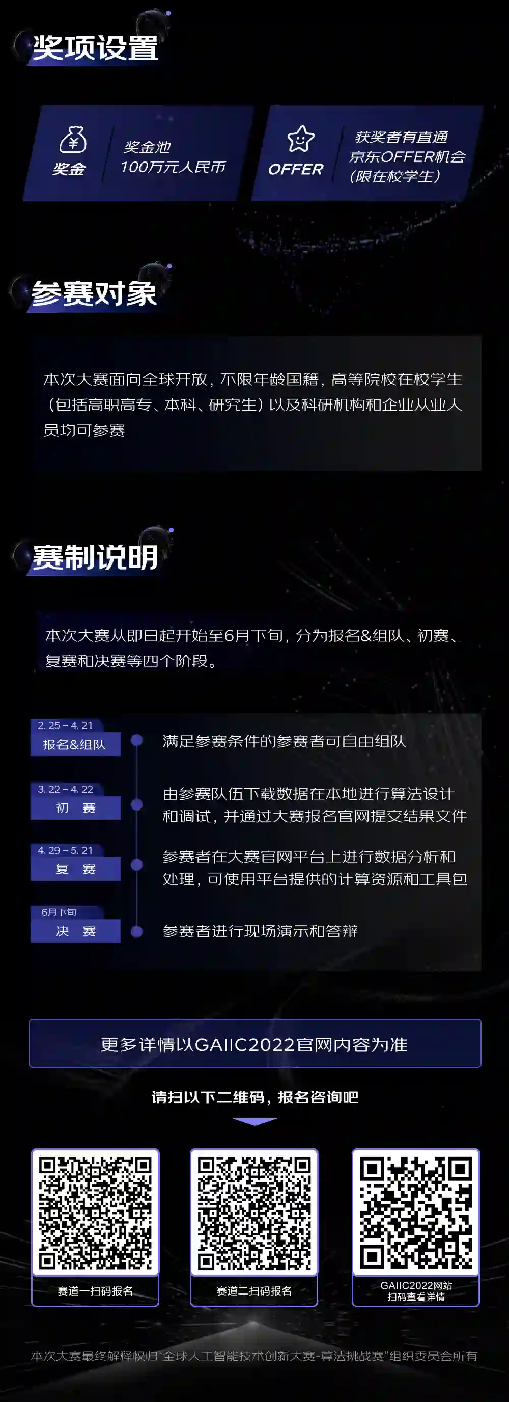 本次大赛的奖金总额是100万人民币,其中每个赛道的比赛奖金池均为50万元人民币,所有奖金均为税前金额。