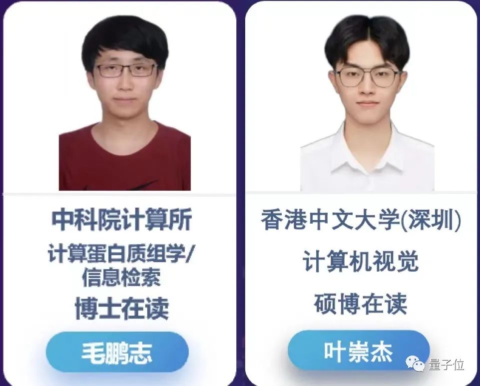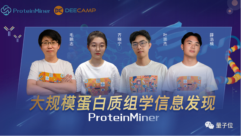 ProteinMiner成员4人,分别是中科院计算所计算蛋白质组学/信息检索方向的博士生毛鹏志,成员包括香港中文大学(深圳)计算机视觉硕博生叶崇杰、中科院计算所生物信息学博士生齐晓宁、香港中文大学(深圳)数据科学与大数据技术专业本科生薛浩楠。