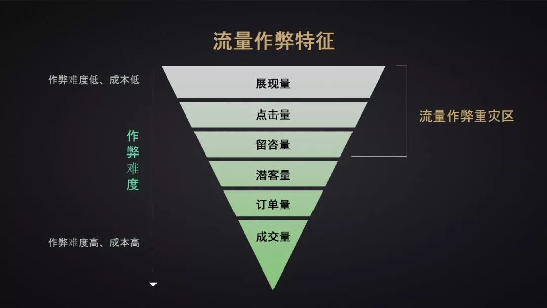 2、流量陷阱:无效与作弊。流量作弊是一个全球性问题,花钱投广告买流量,阅读量容易造假,点击量容易造假,用户留的电话号码也容易造假。