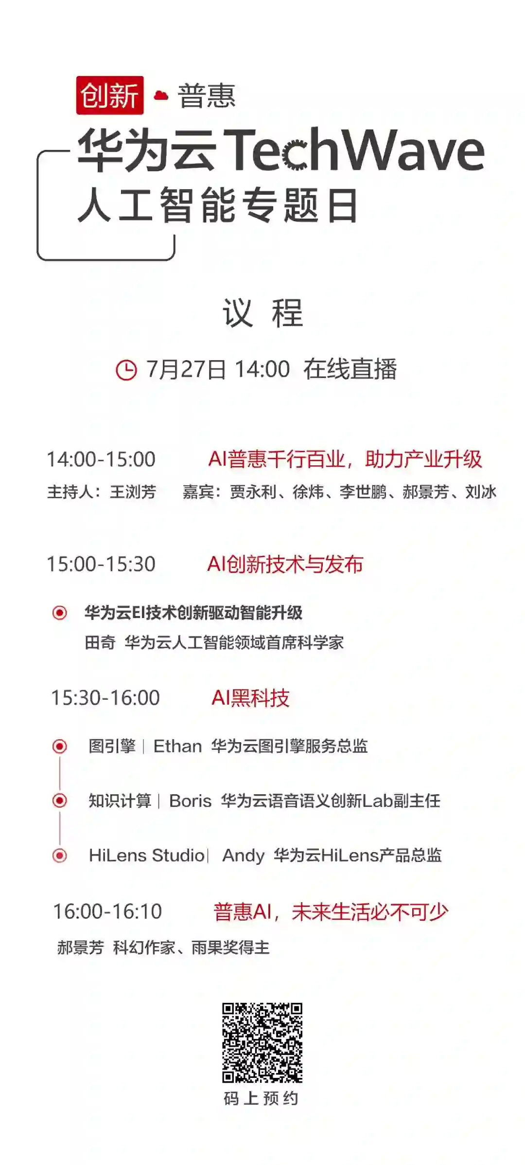 秉承 “普惠 AI” 理念的华为云,又将如何在华为云 TechWave 人工智能专题日上,诠释 “创新 · 普惠” 主题?