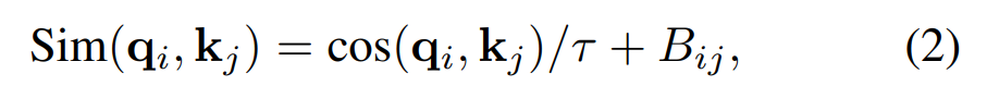 另一方面,在原始的自注意力计算中,像素对的相似项被计算为查询向量和关键向量的点积。研究者发现将这种方法用于大型视觉模型时,特别是在 post-norm 配置中,一些块和头部学得的注意力图经常由几个像素对主导。为了缓解这个问题,他们提出了一种缩放余弦注意力方法,它通过缩放余弦函数计算像素对 i 和 j 的注意力对数: