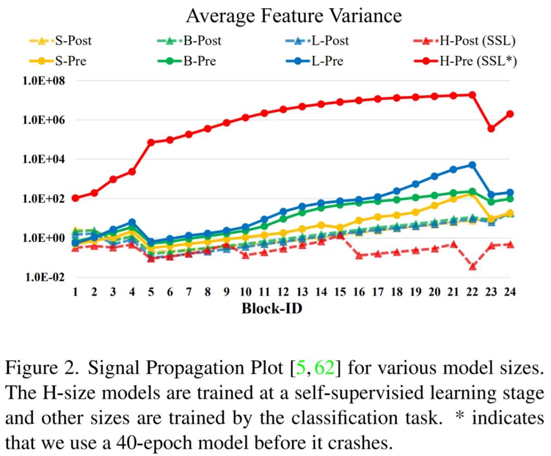 。如下图 2 所示,当我们将原始 Swin Transformer 模型从小到大扩展时,更深层的激活值急剧增加。具有最高和最低振幅的层之间的偏差达到了 10^4 的极值。