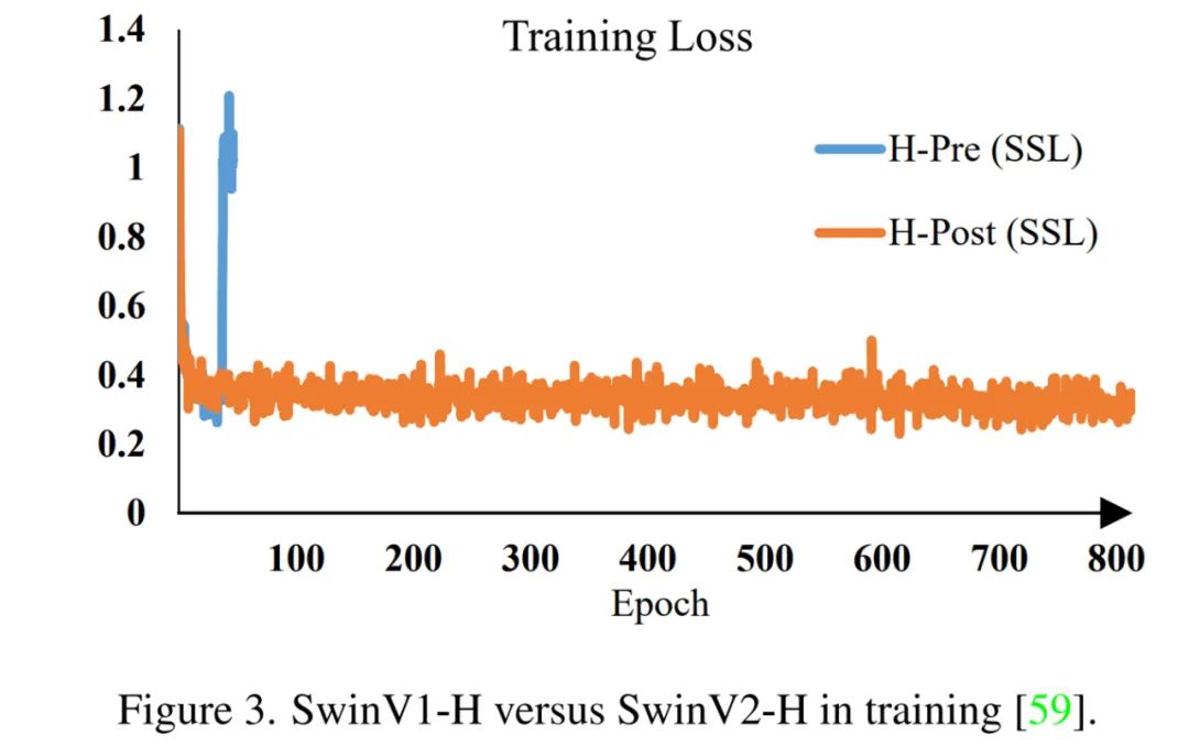 当我们进一步将其扩展到一个巨大的规模(6.58 亿参数)时,Swin Transformer 无法完成训练,如下图 3 所示。