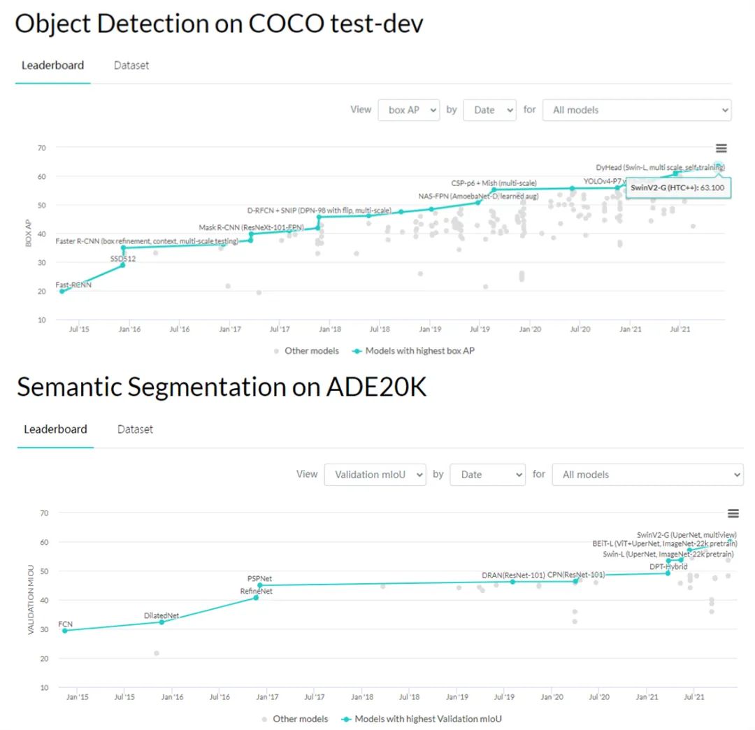 Swin Transformer V2 在四个具有代表性的基准上刷新纪录