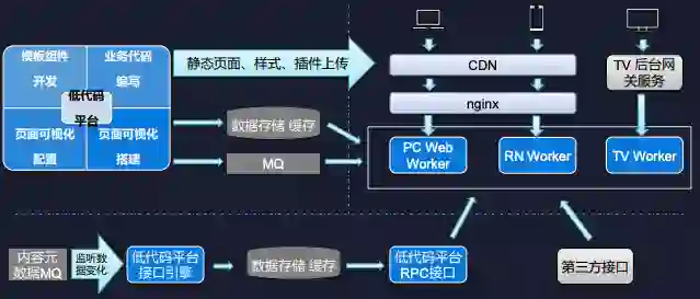 该平台面向多业务开放。业务申请开通后,开发后端的数据源即可利用爱奇艺现有组件搭建页面,也可用低代码平台开发组件。