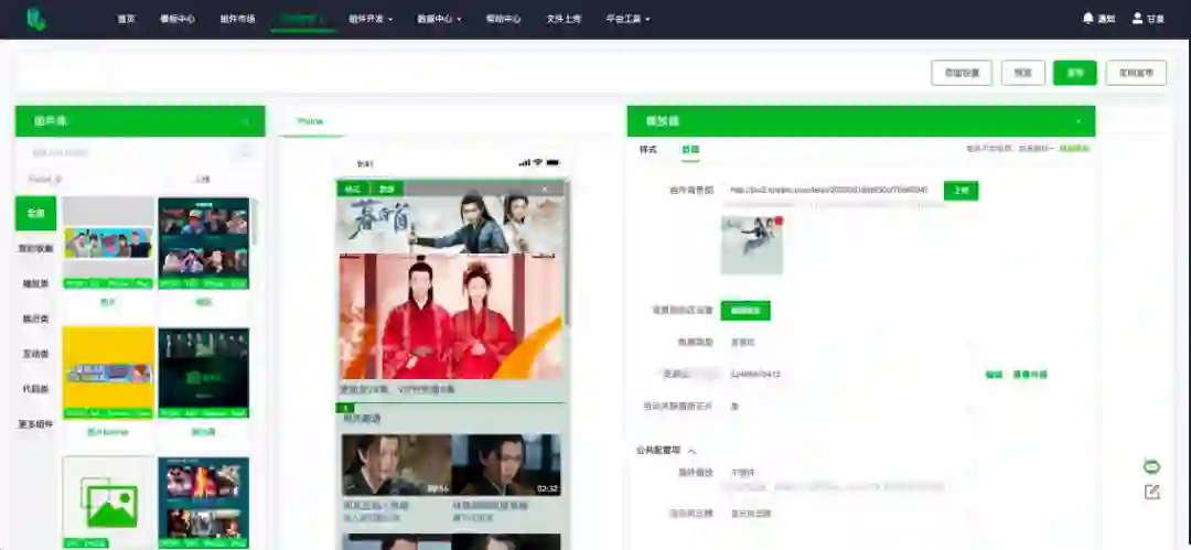 内容上我们建设了模板中心和组件市场。编辑搭建页面时,挑选模板中心中较合适的模板稍加修改即可。