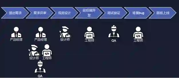 移动端常规页面开发流程包括:提出需求、需求审核、视觉设计、前后端开发、测试验证、修复 Bug、跟版上线七步,涉及到产品经理、设计师、工程师、QA 等角色。