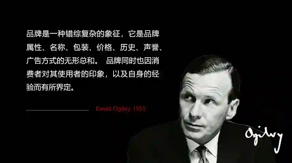 这是奥美的创始人大卫奥格威给的定义,我只记住一个词儿就是“印象”,这就是品牌的部分。
