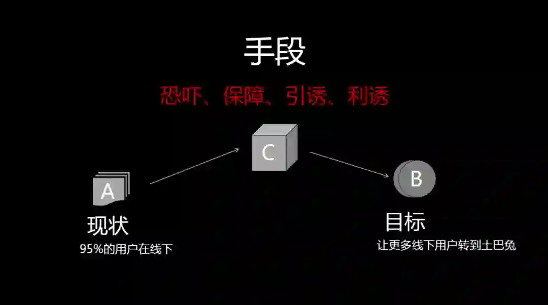 B点目标点事如何让线上的用户更多地选择土巴兔,让现在线下决策的人到线上选装修公司呢?接着要找C点策略,就是定位