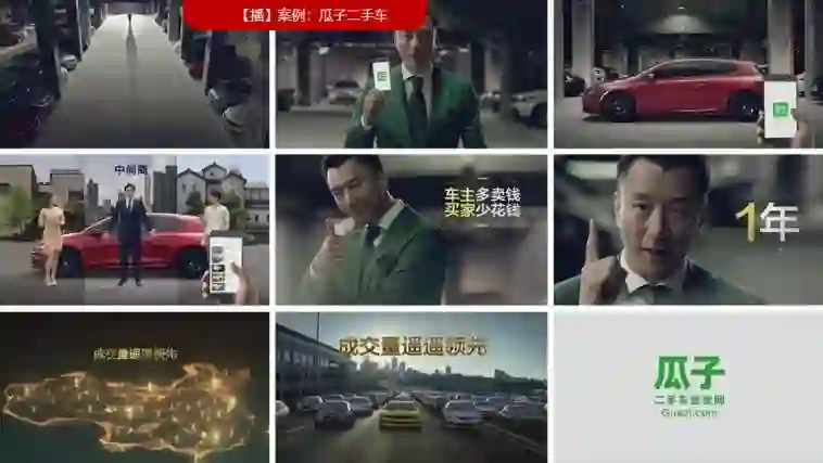 做“播”做的非常好的例子是瓜子。它在停车场刷,在特别大的屏幕上刷,在楼道里面各种地方,它只说一句话“瓜子二手车直卖网,车主多卖钱,买家少花钱,成交量遥遥领先。”