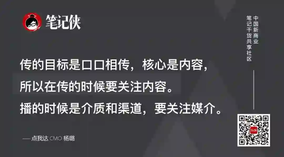 可一旦将它做成品牌重塑,直接定义我自己,且用了大范围渠道传播,所以,反而以失败告终。这就是内容“传”与渠道“播”组合的反例。