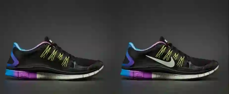 我在奥美时给361度提案的时候用过这张图,我问这双鞋(左边)卖多少钱?现场很多人讲说199,198,88都有可能。加上这个勾,我说这个鞋卖多少钱?398起。