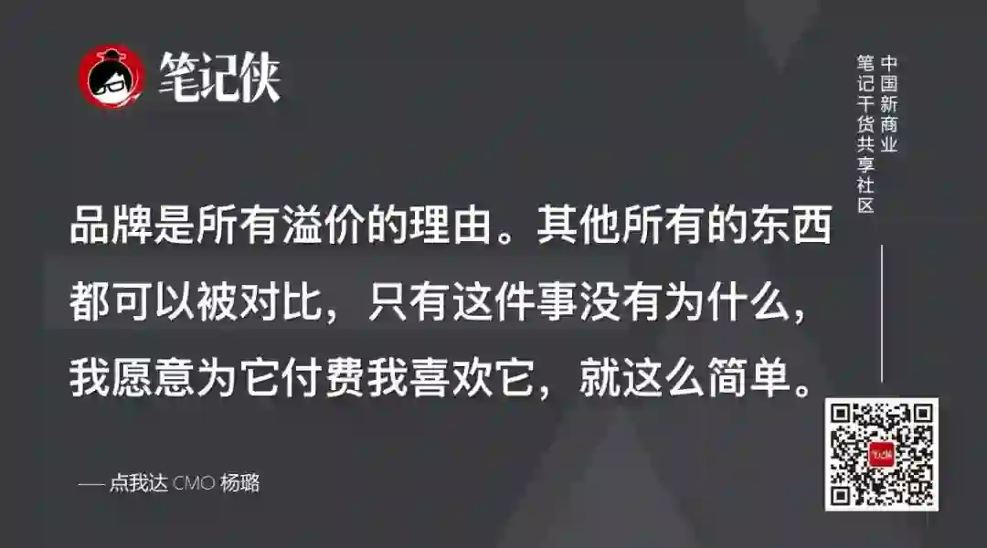 品牌是所有溢价的理由。其他所有的东西都可以被对比,只有这件事没有为什么,我愿意为它付费,我喜欢它,就这么简单。