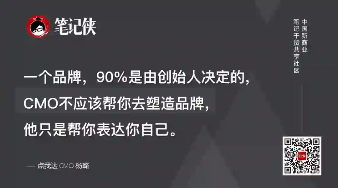 因为一个品牌,90%是由创始人决定的,CMO不应该帮你去塑造品牌,他只是帮你表达你自己。
