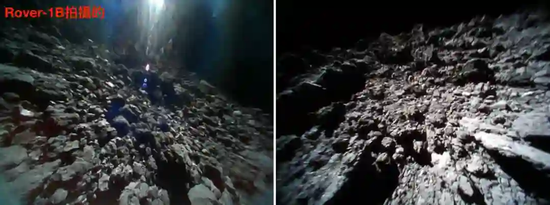 ↓ Rover-1B在9月23日跳跃之前(左)和落地之后(右)拍摄的照片,确实有种“龙宫徜徉”的感觉