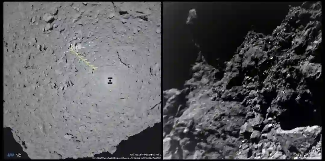而这一次,隼鸟2号扬眉吐气了。释放后不久,项目组就确认两台巡视器顺利着陆,而且还传回了照片。