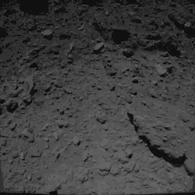 ↓ 9月21日9月21日13:04(日本时间),隼鸟2号距离“龙宫”表面64米处连续拍摄的“龙宫”高清照,这也是“龙宫”目前为止最高分辨率的一张照片。