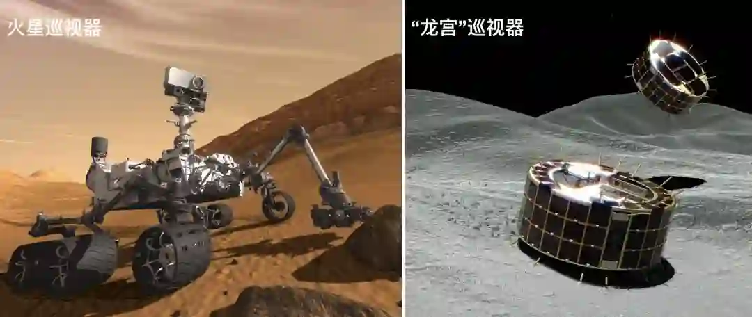 所谓“巡视器”,当然是能一边移动一边探测的。只不过,因为小行星“龙宫”实在是太小了,表面重力极其微弱,如果用我们熟悉的好奇号火星车那样带轮子的巡回车反而移动不便。