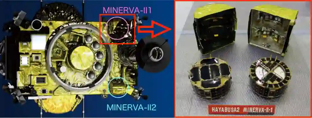 13年前,隼鸟号曾携带一枚约1斤重的迷你着陆器Minerva,但Minerva着陆失败了。