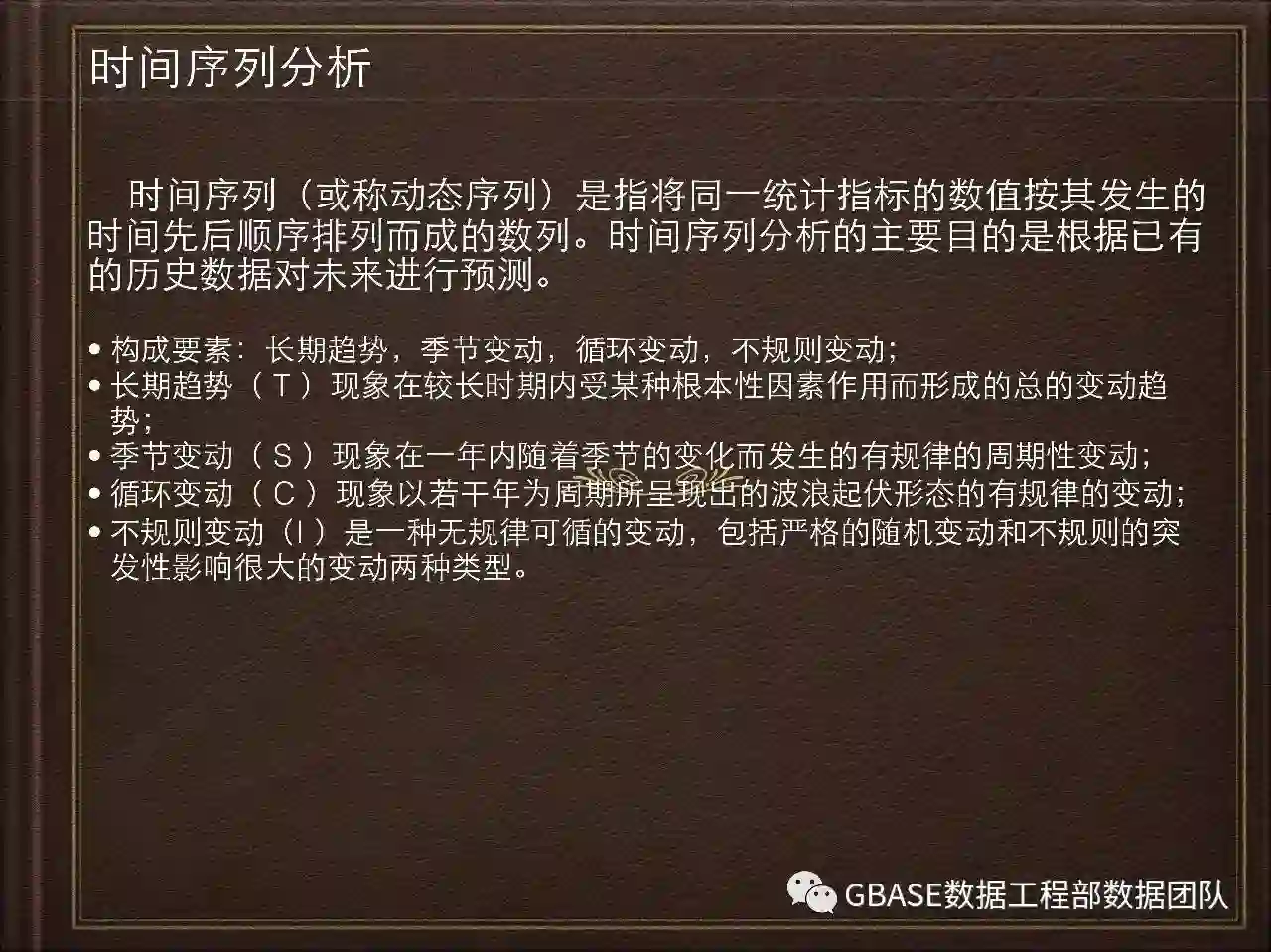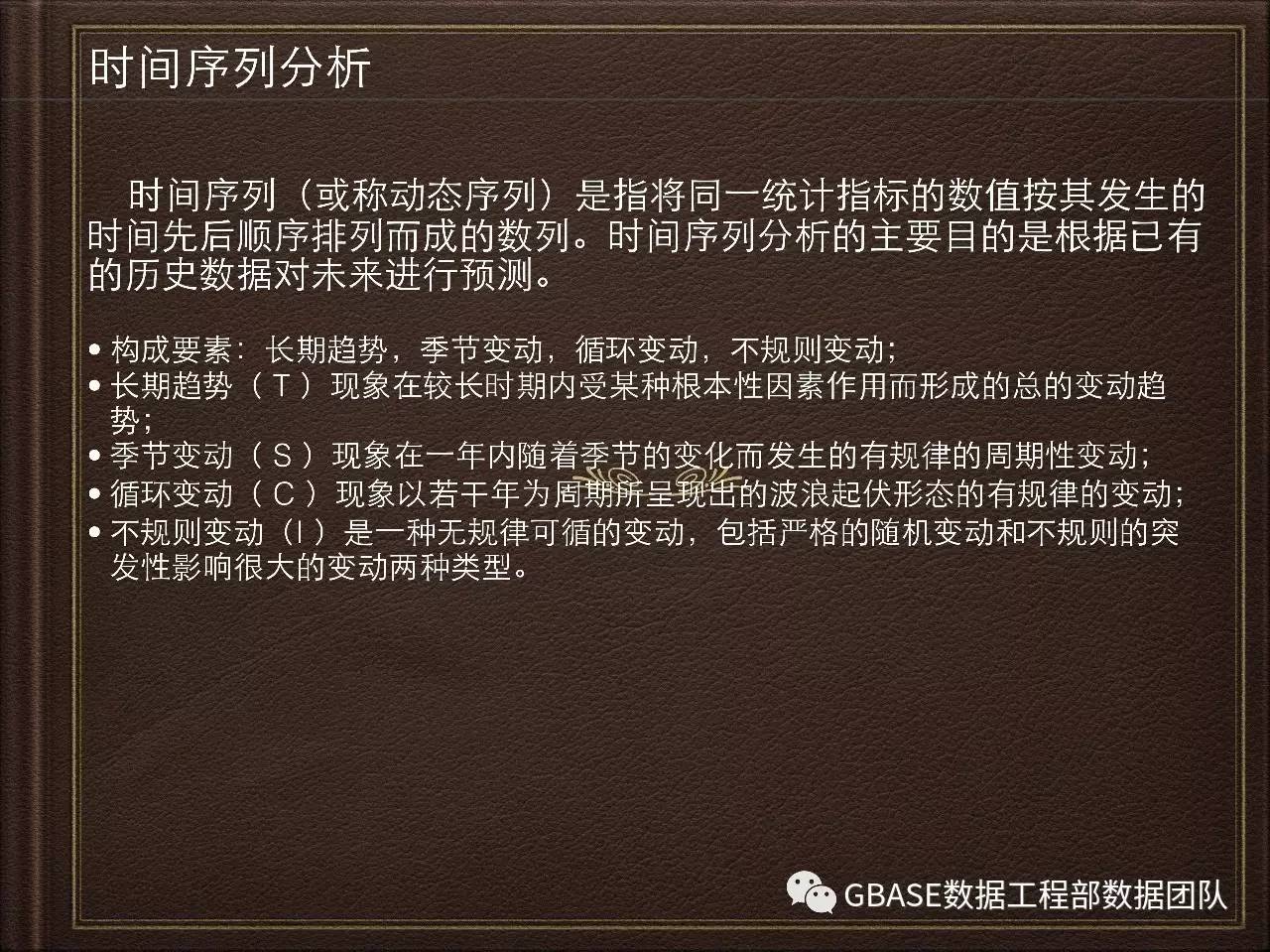 时间序列预测,主要研究的是序列自身的发展趋势,也就是某一变量的变化。比如说,需要计算出形如y(t)=ay(t-1)+by(t-2)+c形式的模型,这里,y就是对应的序列变量。