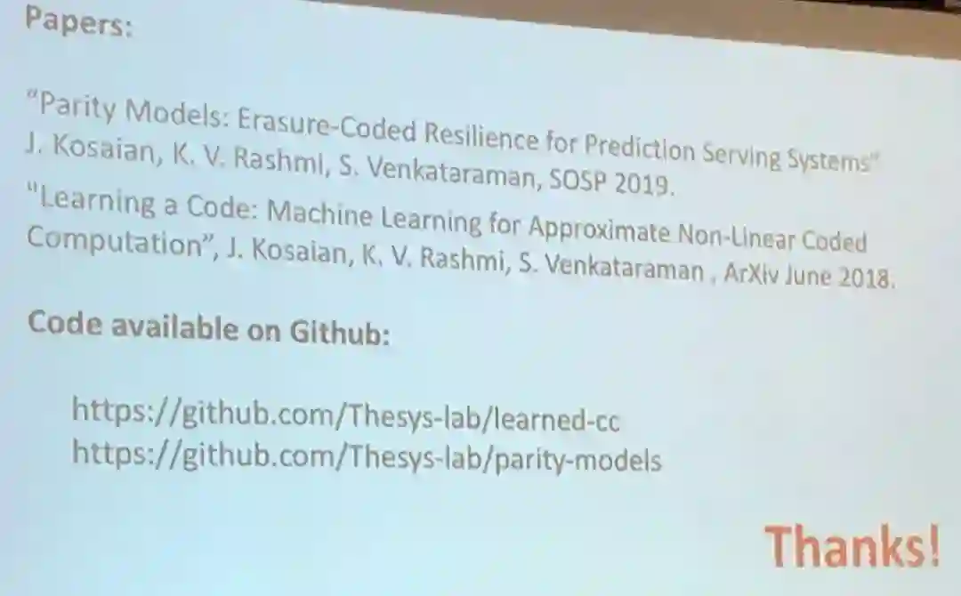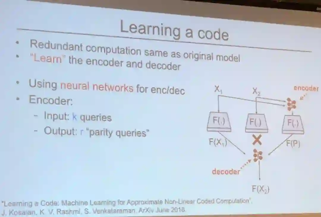 从高层面看,Vinayak 演讲的思想是利用纠删码技术(erasure coding)的恢复能力来平衡分布式机器学习系统中的恢复延迟和资源负载。