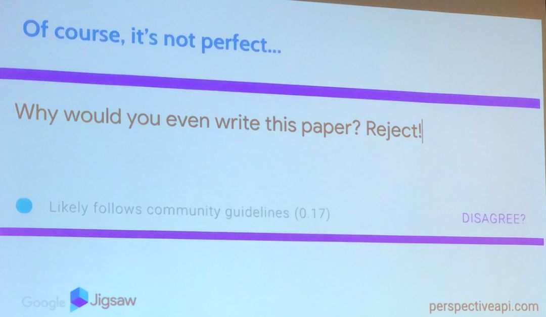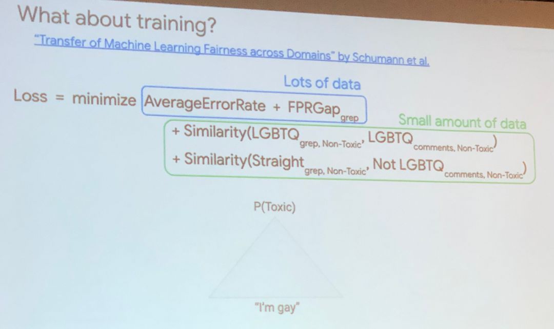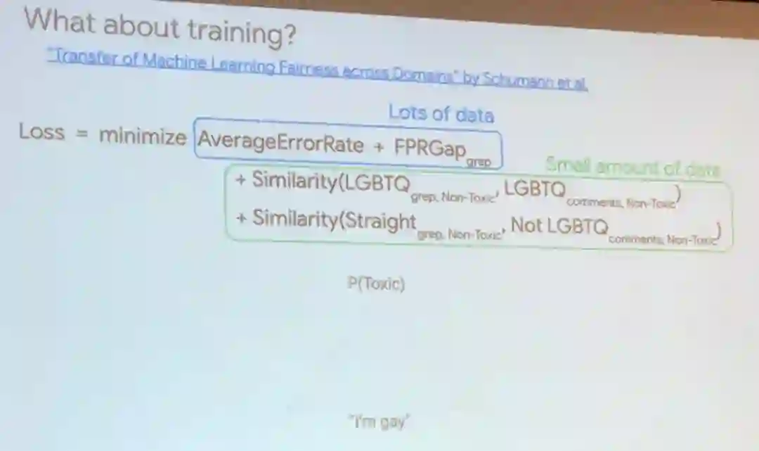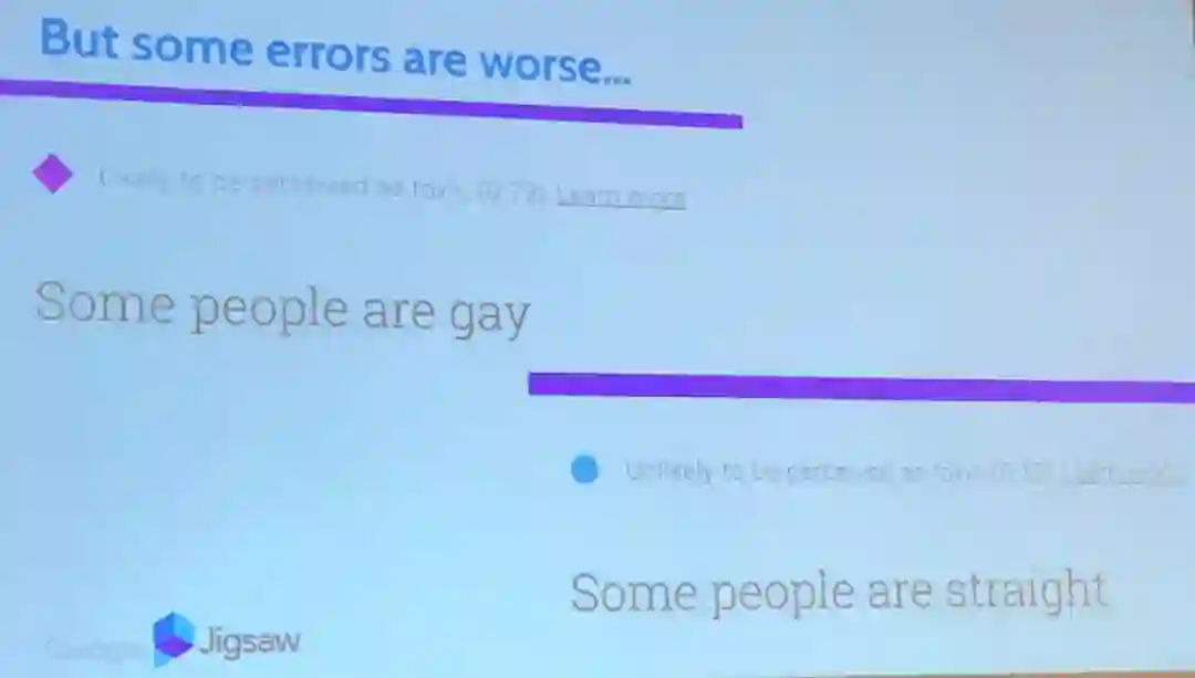 Beutel 强调,这样的偏见和不公平在机器学习领域并不罕见,他还给出了在评论审查应用方面的例子,比如「有些人是同性恋」会被算法认为比「有些人是异性恋」更有敌意。