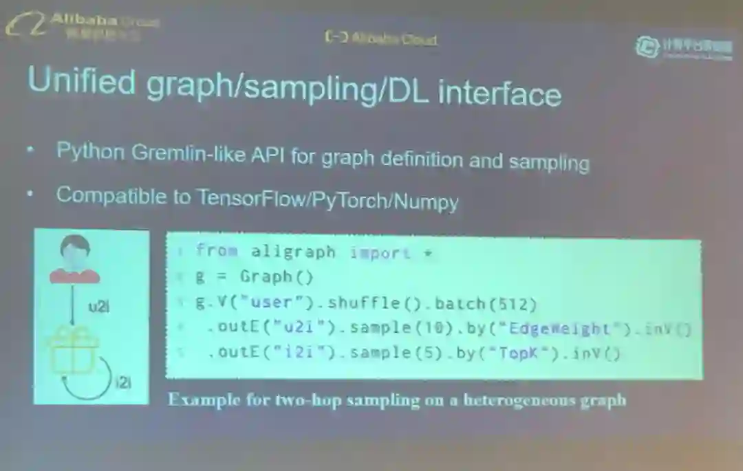 AliGraph 为执行图计算(比如对异构图进行采样)提供了 Python 式的接口。