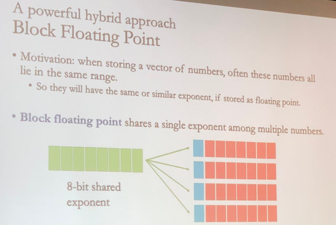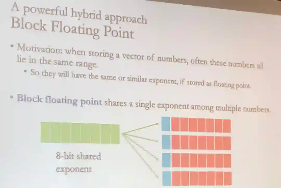 基于这一观察,Block Floating Point 通过为多个数值存储单个指数而能实现强大的数值处理能力。