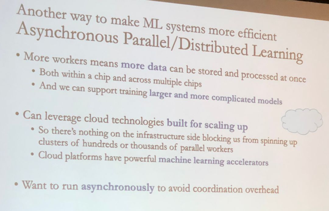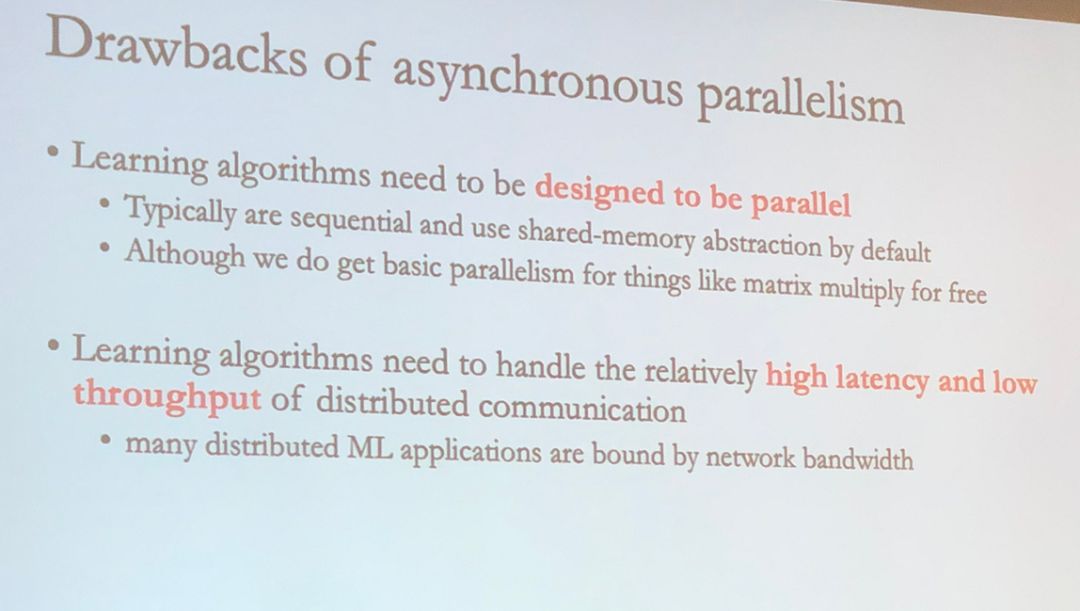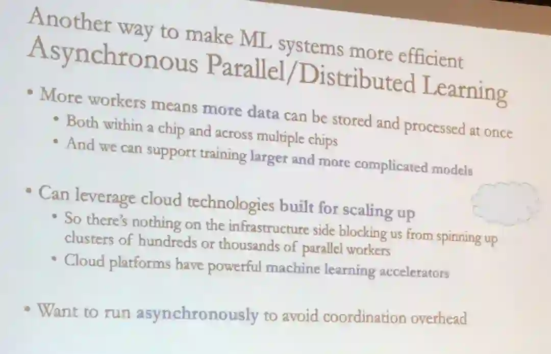 De Sa 介绍的另一个研究主题是改进异步并行/分布式学习。
