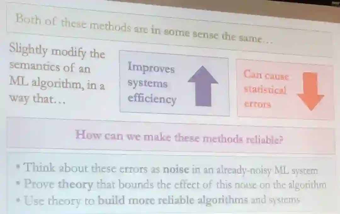 De Sa 表示,机器学习系统在系统指标与统计准确度方面存在权衡,通过对这种权衡进行理论理解,可以通过在算法到硬件的整个层次结构中实现性能提升。