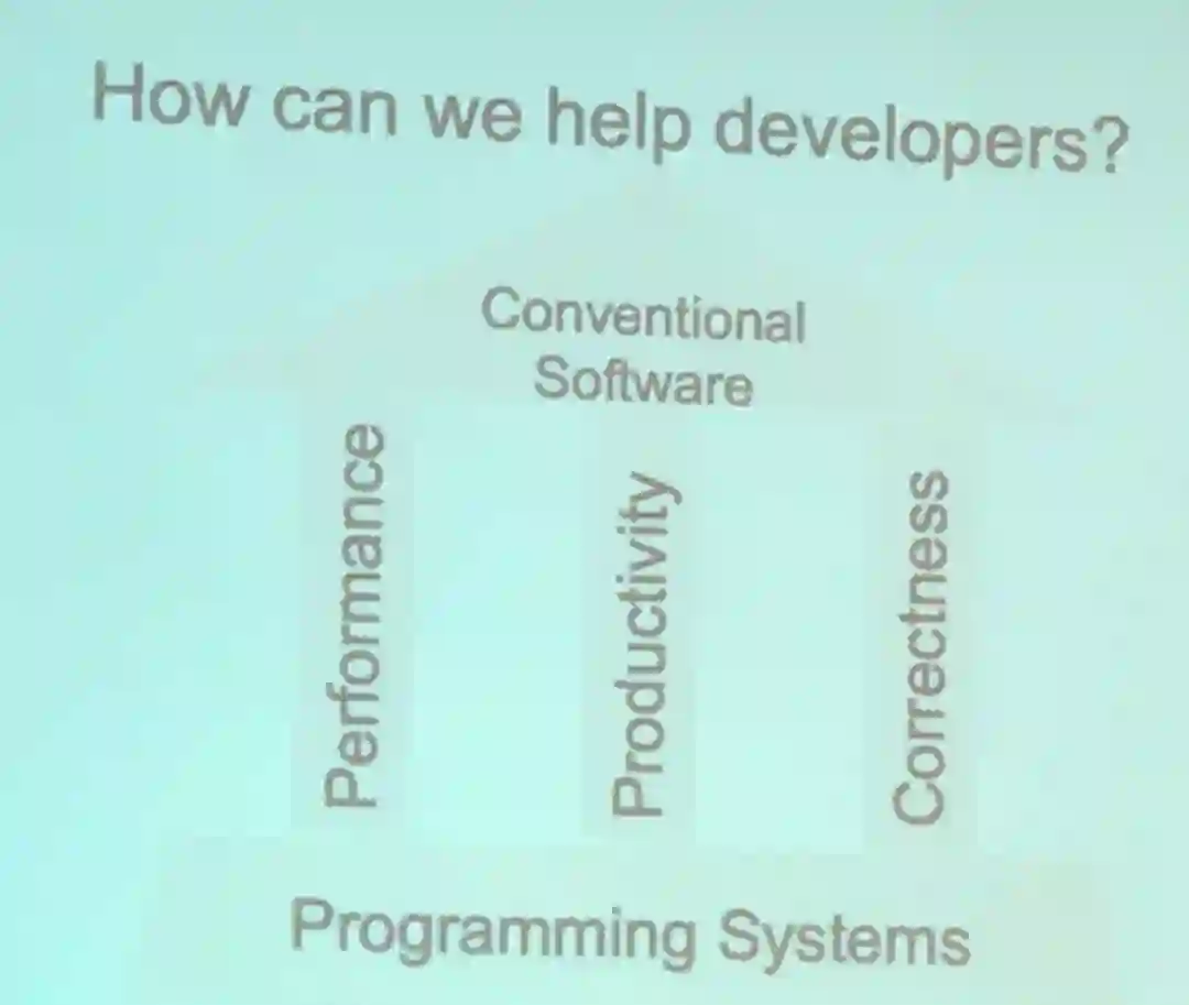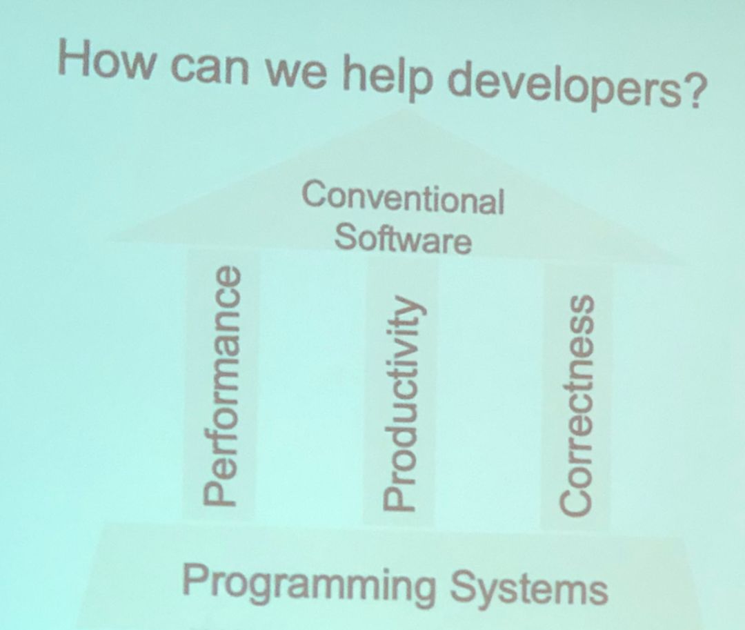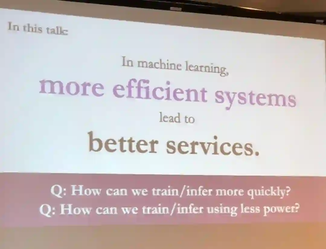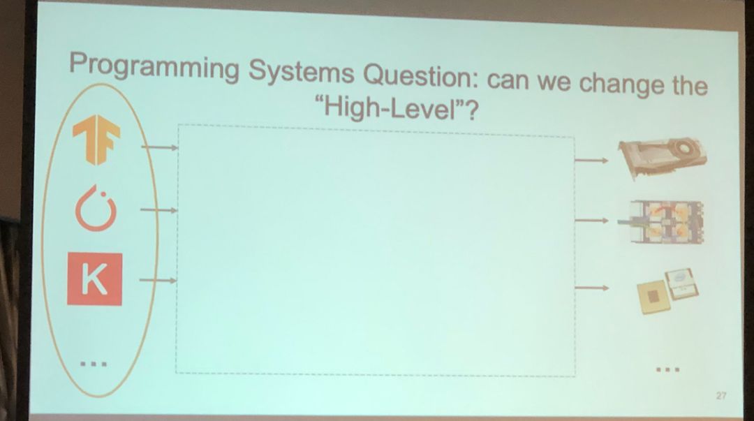 Lemieux 的演讲遵照了伯克利的传统,以「A Berkeley view of...」开篇,从编程语言和软件工程角度介绍了改进机器学习系统性能方面的工作。