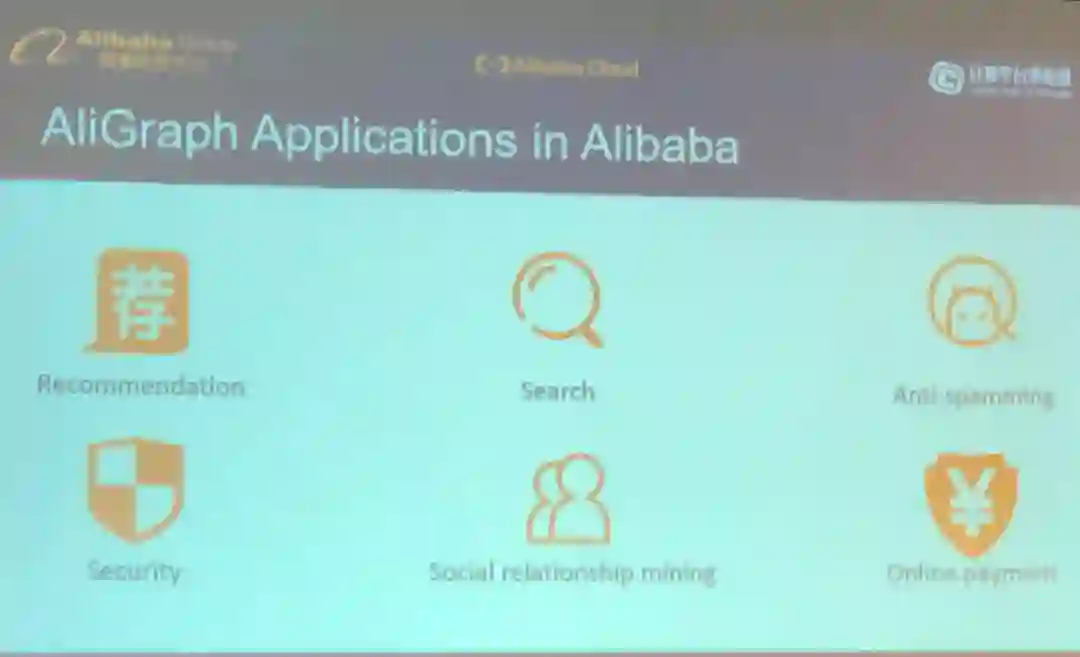 AliGraph 已被整合到阿里巴巴的许多服务中,包括推荐、搜索、反垃圾信息、安全、社交关系挖掘、在线支付。