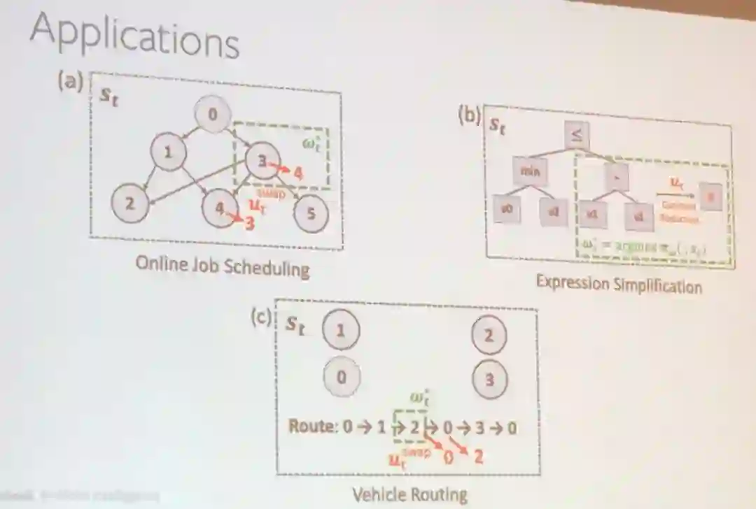 田渊栋还通过几个案例解释了使用强化学习改进系统的方式,包括在线工作调度和表达式简化。