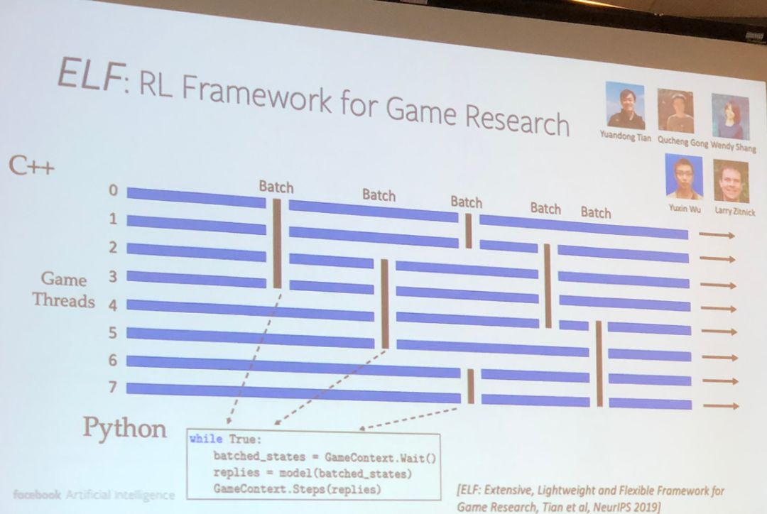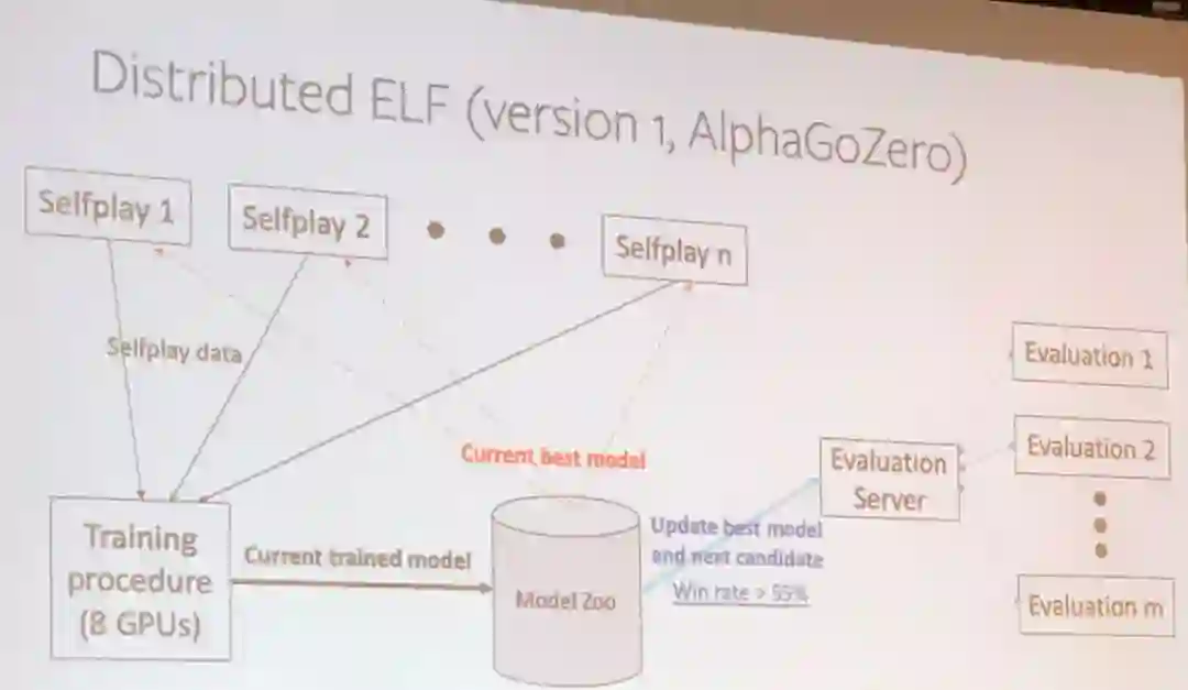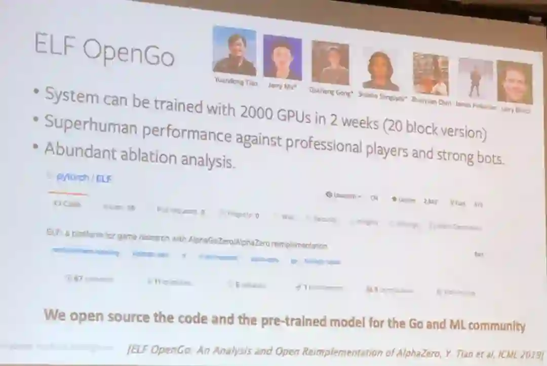 然后他自豪地介绍了 Facebook 的开源 ELF OpenGo。