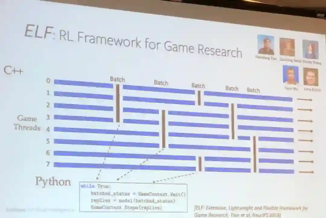 最后,田渊栋总结了他的 Facebook 研究团队在强化学习和大规模系统方面的工作。