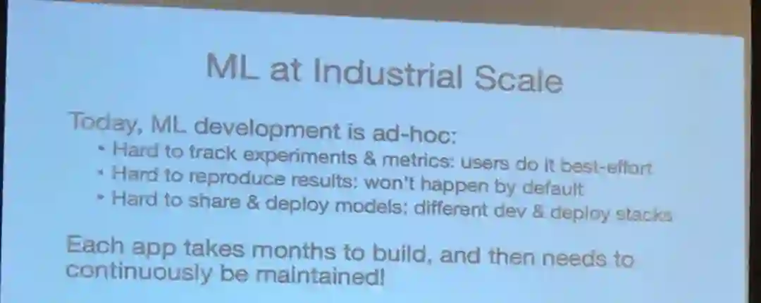 最后,Zaharia 介绍了工业级机器学习平台所面临的挑战。