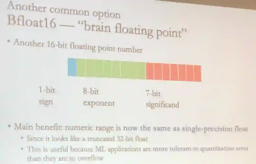 实际上,这种思想已经在一些机器学习专用加速硬件上得到了应用,其中很多训练芯片都利用了低精度计算。