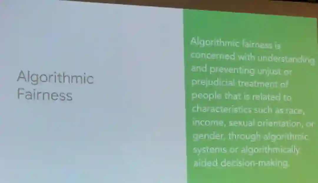他接下来介绍了「算法公平性」的概念: