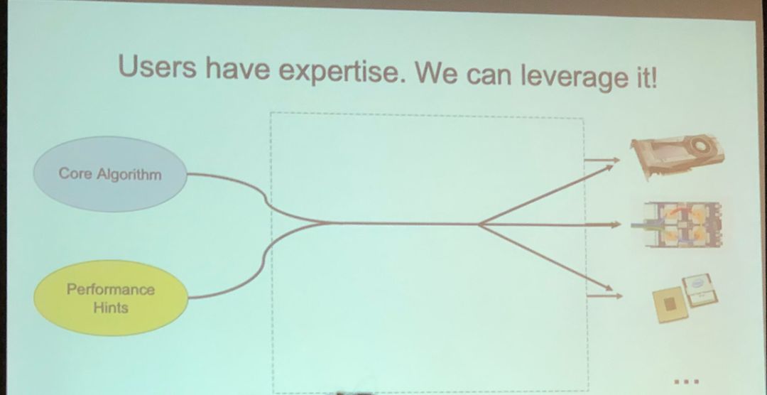 因为在为不同的硬件优化编译结果方面,用户能够知道的情况比通用编译器多,所以 Lemieux 提议使用高层面的平台,让用户能向编译器表达自己的性能优化方法。