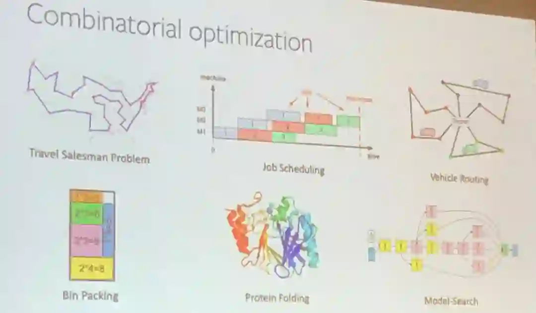 然后他介绍了他的团队正试图用强化学习解决的一个 NP-hard 组合优化问题。