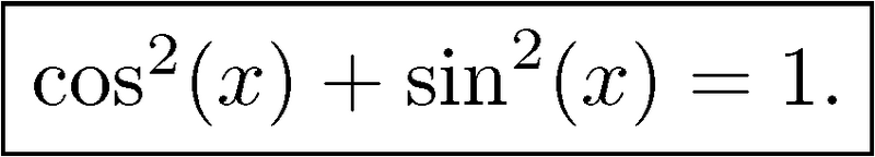 这对于任意的 x 都成立. (为什么这是毕达哥拉斯定理呢?如果直角三角形的斜边是 1, 其中一个角为 x, 自己验证三角形的其他两条边长就是 cos (x) 和 sin (x).)