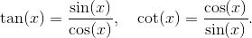 三角函数间的关系用来十分方便. 首先, 注意到正切和余切可以由正弦和余弦来表示: