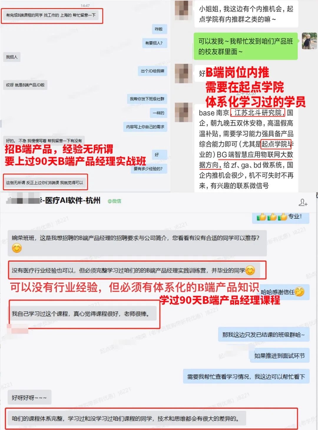 求职找工作也更多一些机会哟,各个一二线城市企业招聘也会优先选择学习过《90天B端产品经理班》的同学。