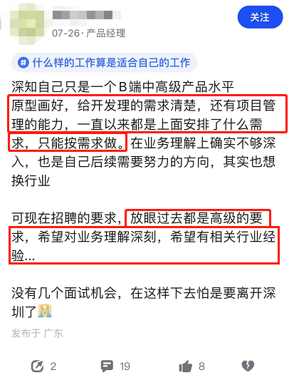 会画原型,会写PRD,能做需求,能跟项目,却没有锻炼出核心的业务能力。到头来却面试机会也没有几个,回头去看自己过去经验感觉就像个打杂。