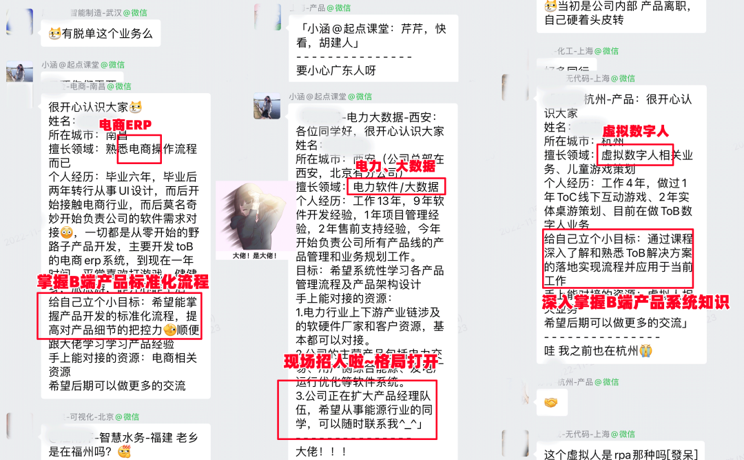 你可以在班级群里和这些一线互联网行业大厂产品专家/总监导师现场1v1交流。