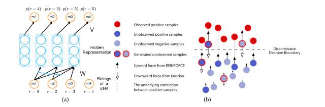 图 10:(a)基于神经自回归的推荐系统;(b)IRGAN。