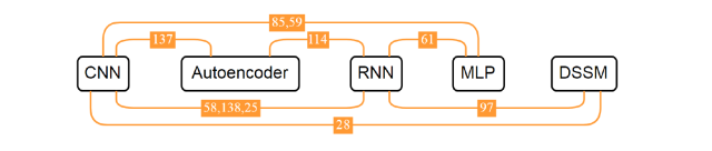 深度语义相似性模型(DSSM)是一种广泛应用于信息检索领域的深度神经网络。它非常适用于排行榜(top-n)推荐。基础型 DSSM 由 MLP 组成,更高级的神经层比如卷积层和最大池化(max-pooling )层可以被很容易地添加进去。