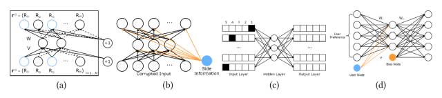 图 4:(a)I-AutoRec;(b)CFN;(c)ACF;(d)CDAE。